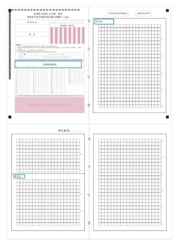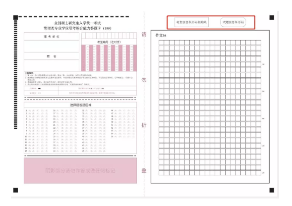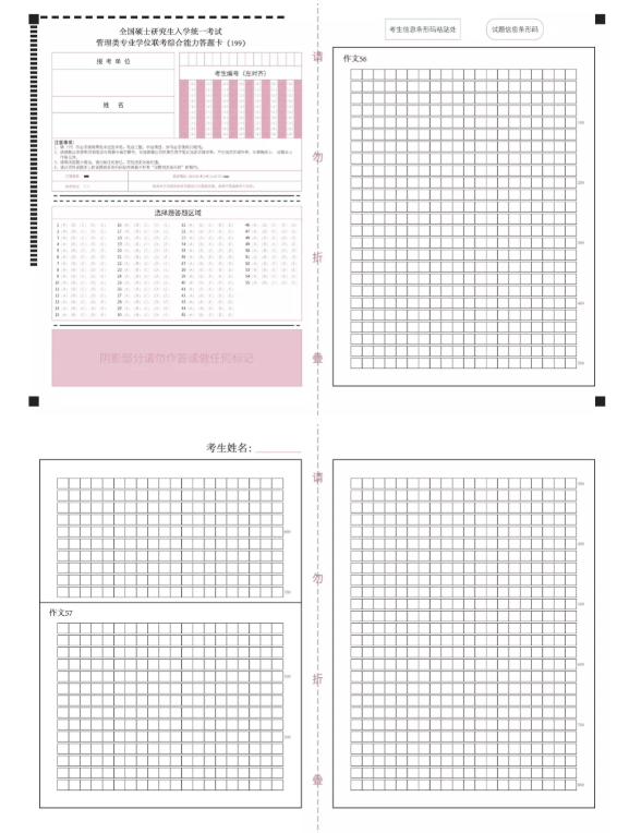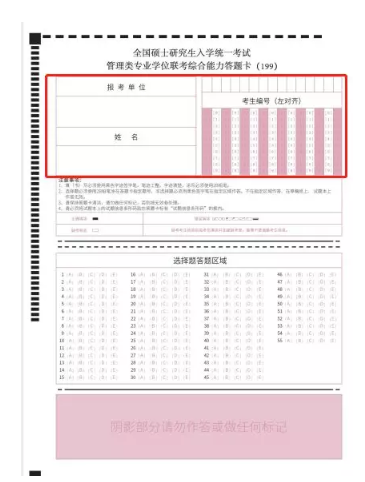 管理类联考答题卡的参照样式