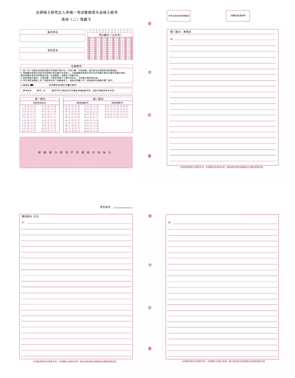 管理类联考的答题卡包括联考综合答题卡、英语(二)答题卡。
