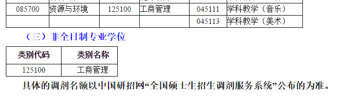 可接收调剂的专业学位(类别、领域)均接收“退役大学生士兵”专项计划的调剂,全校共3个调剂名额;“退役大学生士兵”专项计划的复试总分线为教育硕士280分;城市规划、电子信息、机械、材料与化工、资源与环境、能源动力、土木水利200分;工商管理硕士160分;单科分不低于25分。