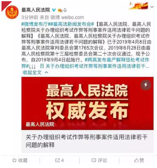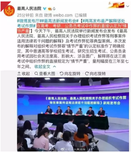 近段时间,最高人民法院、最高人民检察院联合对外发布《关于办理组织考试作弊等刑事案件适用法律若干问题的解释》。