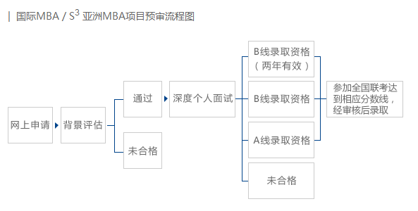 申请者需在10月完成全国MBA 联考网上报名及11月现场确认流程,录取时按照预审系统内志愿顺序从高到低录取。