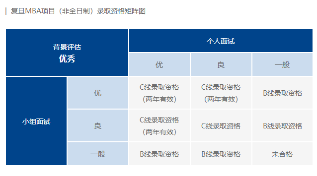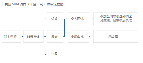 * 复旦MBA项目要求报考的考生全员参加预审,也就是说参加联考前就要进行背景评估及面试,联考后不再安排面试。