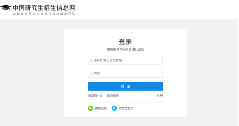 请考生用学信网的账号登录。没有学信网账号的,可使用身份证号码注册一个。