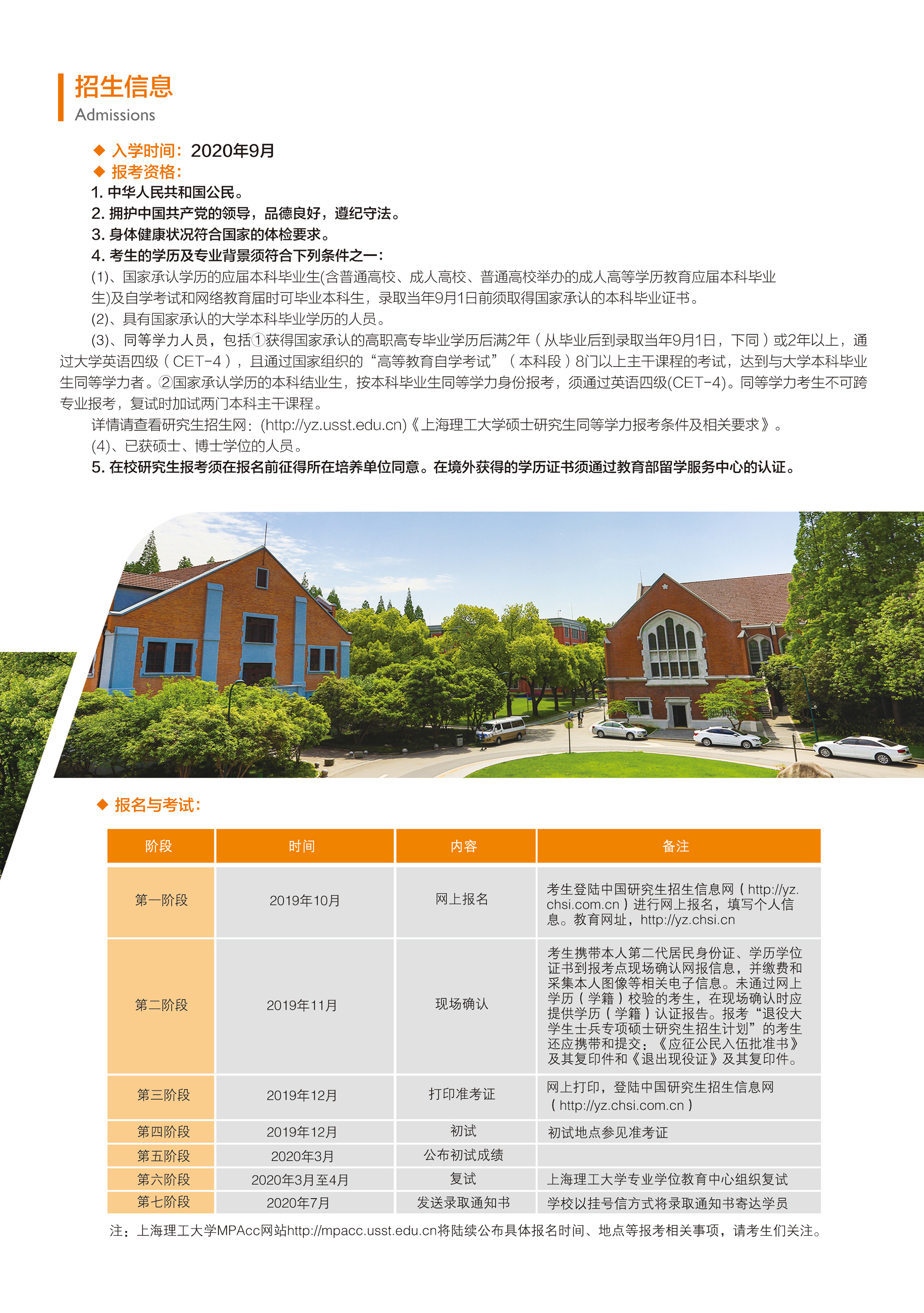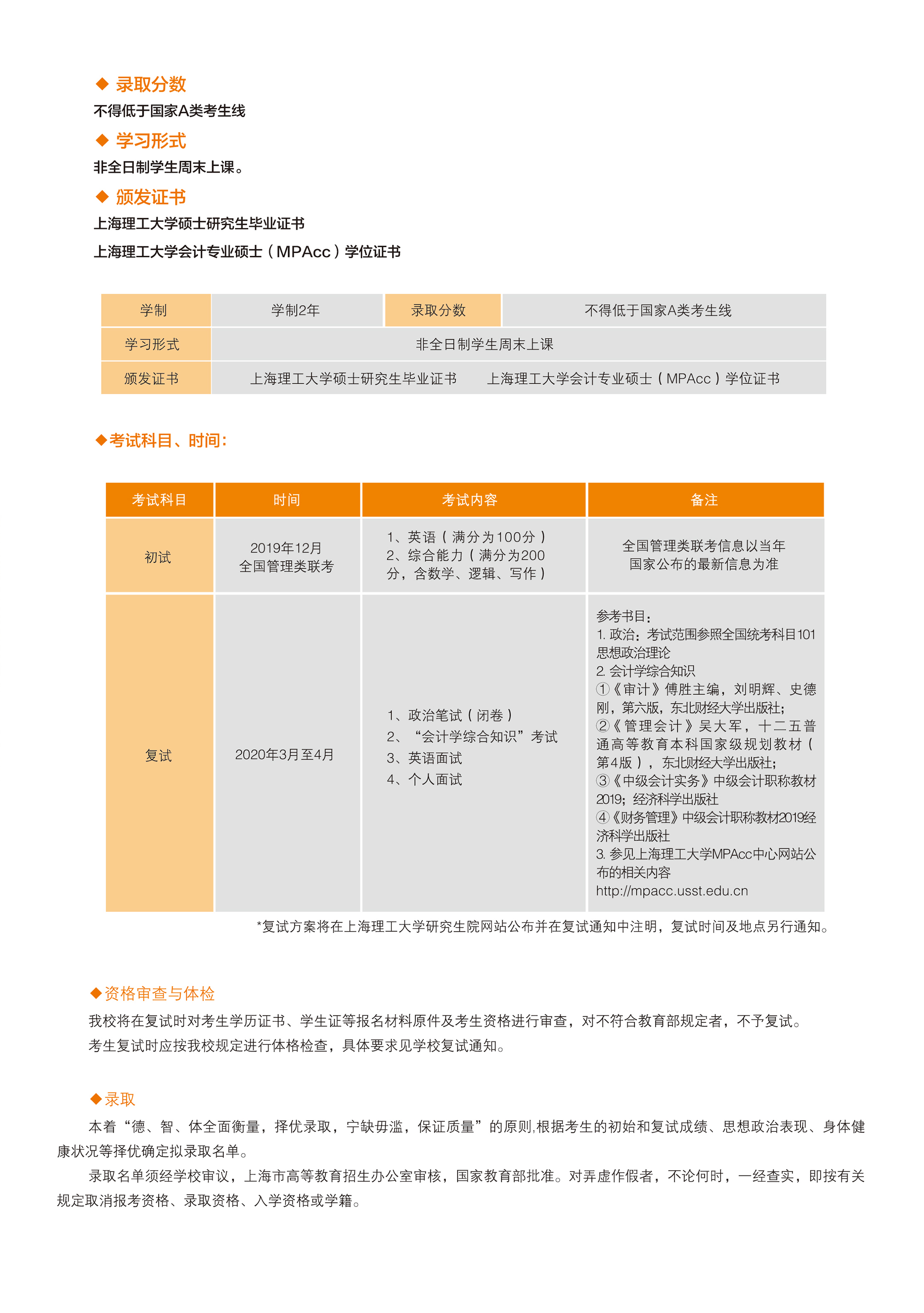 2020年上海理工大学会计硕士项目(MPAcc)招生简章