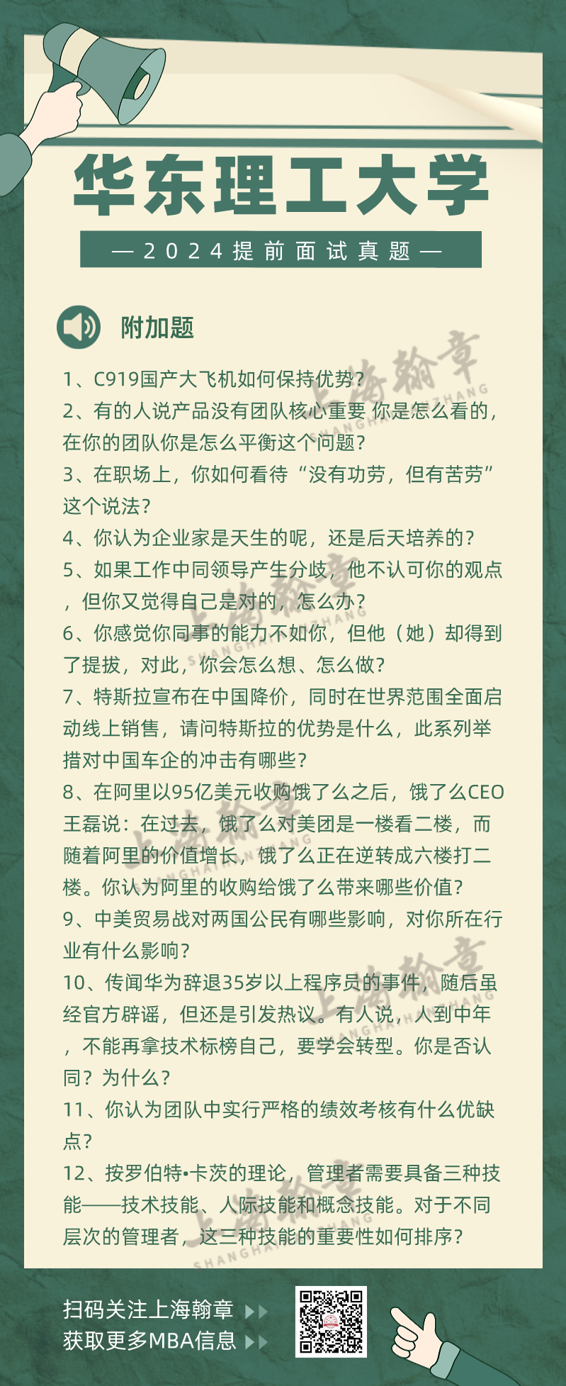 2024MBA提面指南 | 华东理工大学MBA提前面试真题汇总!附面试流程