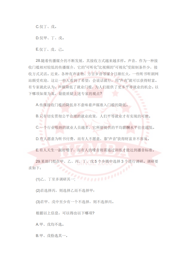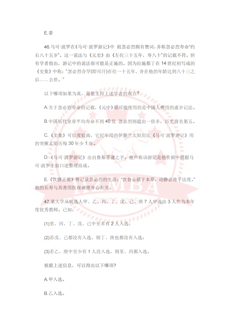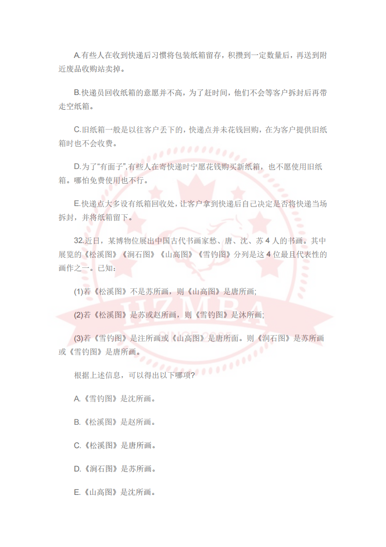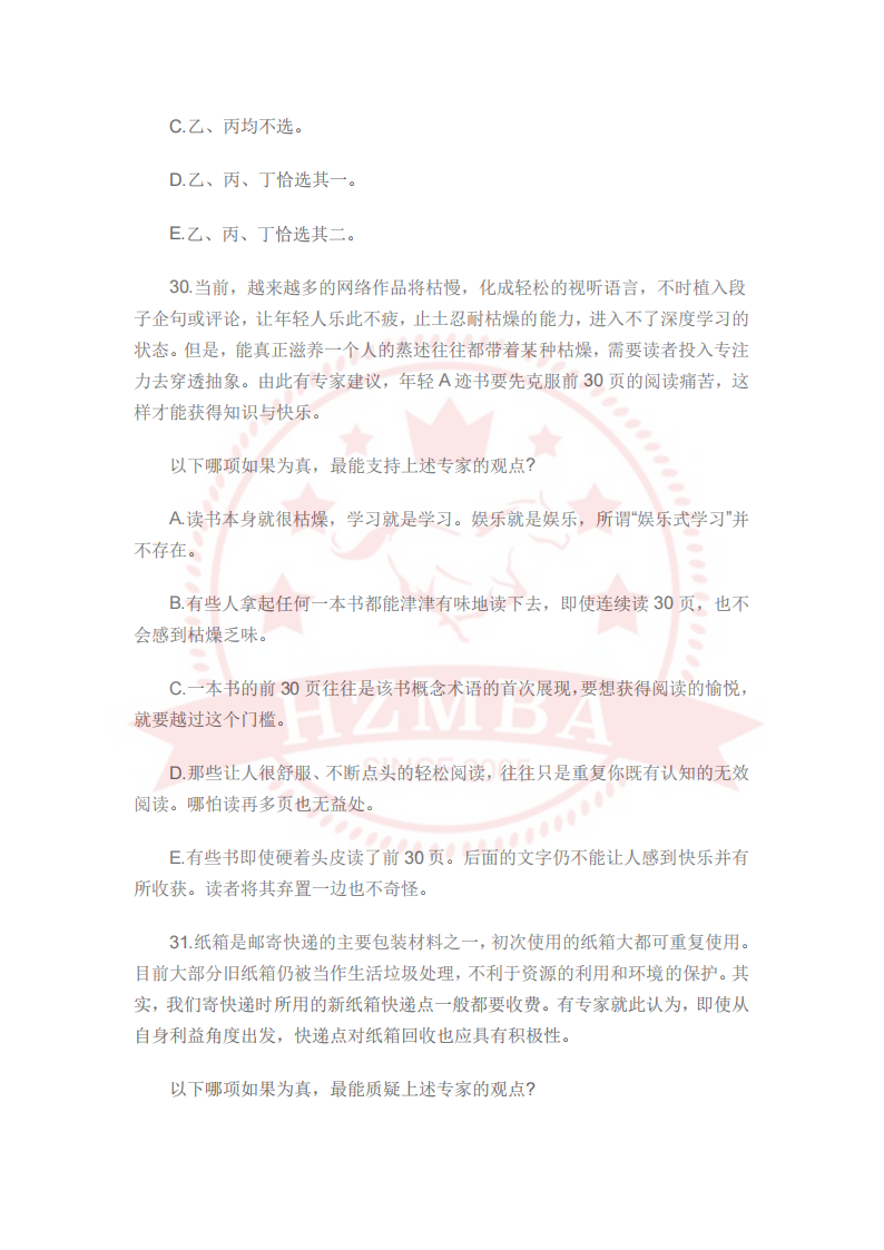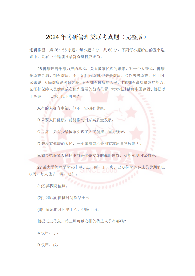 2024管理类联考逻辑真题(完整版)