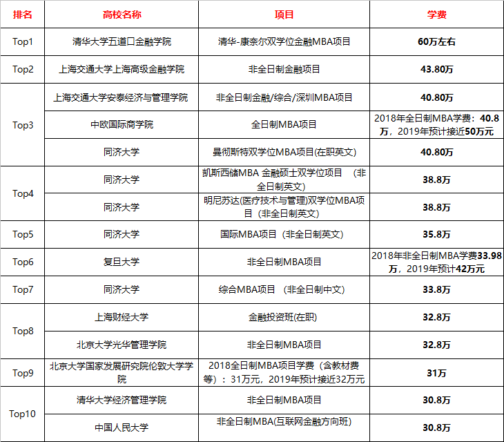让我们先看一组2019年各大名校学费最新数据TOP10排行: