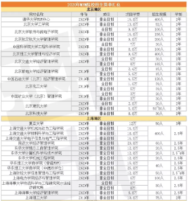 2020年MEM院校招生简章汇总