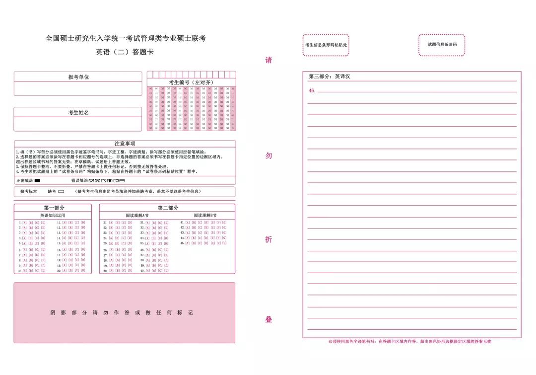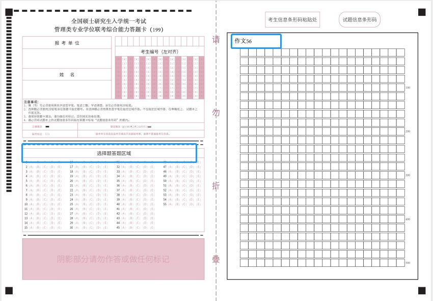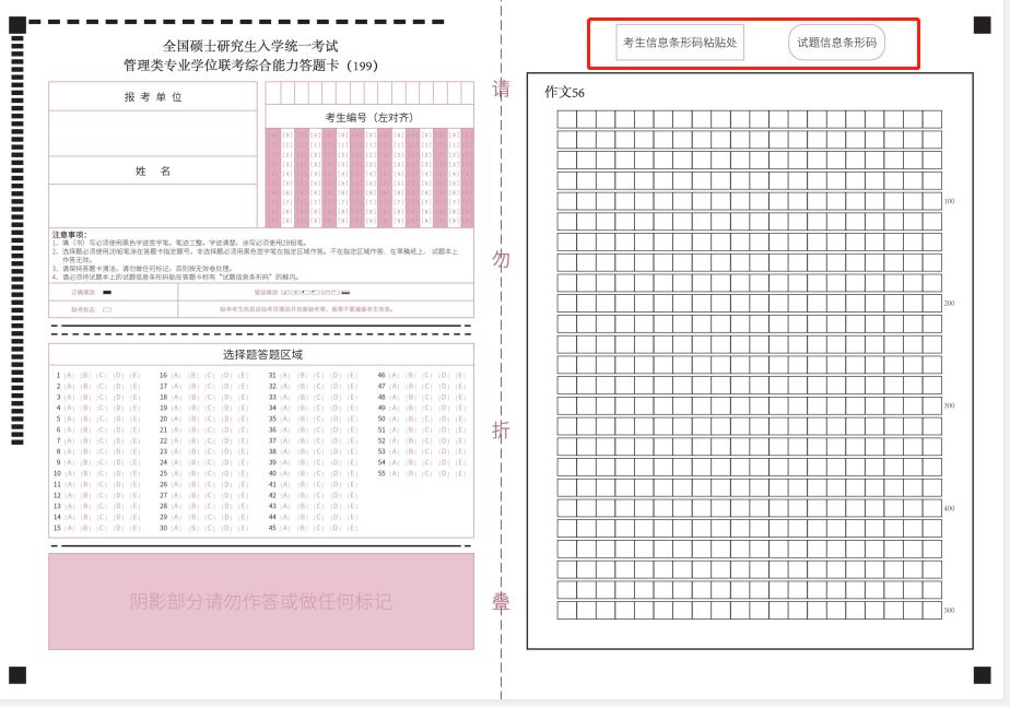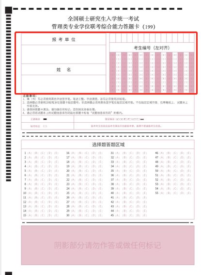 管理类联考答题卡的参照样式