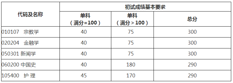 1. “少数民族高层次骨干人才计划”:总分满分等于 500 分的专业,要求考生总分不低于所报考学科初试成绩基本要求总分 20 分;总分满分等于 300 分的专业,要求考生总分不低于所报考学科初试成绩基本要求总分 15 分。其中面向西藏地区“公共管理人才培养计划”专项,要求考生总分不低于145 分。面向新疆喀什地区医学硕士专项,要求考生总分不低于 238 分。