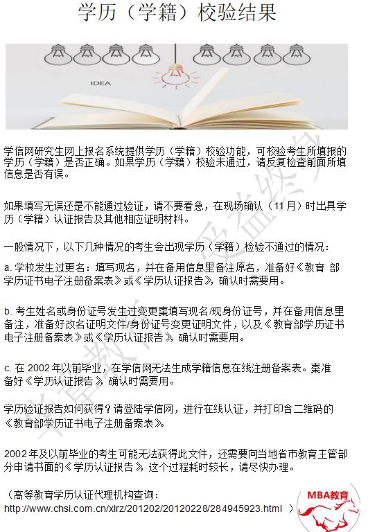 出现学历校验不通过,一是学信网上没有毕业信息,可以到线下学历认证机构进行学历认证,出纸质的学历认证报名,在现场确认时出具;二是学信网上有毕业信息,但依然不通过,可以将“教育部学历证书电子注册备案表”打印出来,在现场确认时出具。