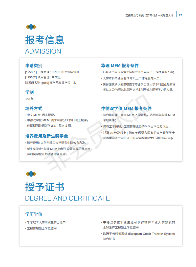 华东理工大学工程管理硕士(MEM)2021招生宣传册