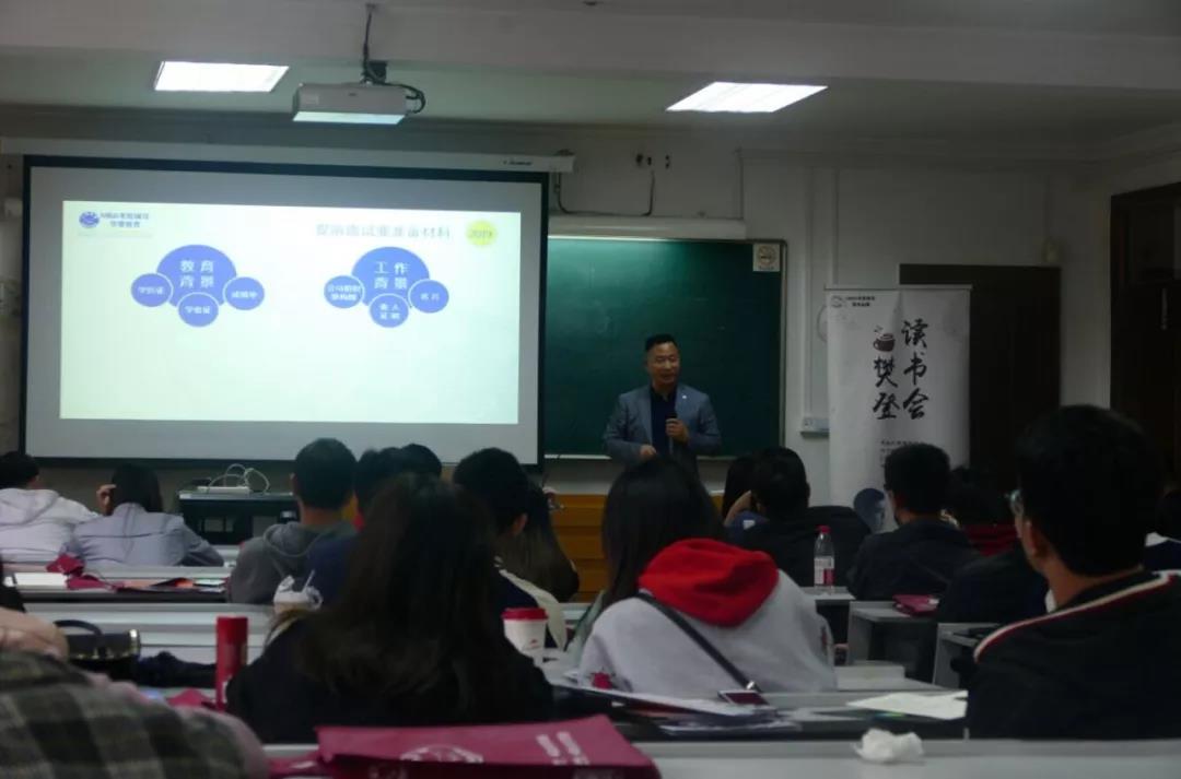 首先是财大的朱老师,朱老师告知同学财大是中国最早的商学院,中国最早有MBA项目,并且被评为六星级高校的院校。也着重讲了今年提前面试也将会提早,已经确定第一批面试是在5月份,资料截至时间为5月6日,各位亲爱的同学们,上财报考人数也是非常火爆,你们可以开始准备起来啦,上财等着你们哦~