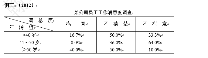 As is illustrated in the table, the percentage ofpeople under 40, between 41 and 50 and above 50 who hold content feeling withtheir jobs is 16.7%, 0.0% and 40% respectively, while that ofdiscontent feeling of the three groups is 33.3%, 64% and 10.0% respectively.It is apparent that the satisfaction degrees of different age groups varysignificantly.