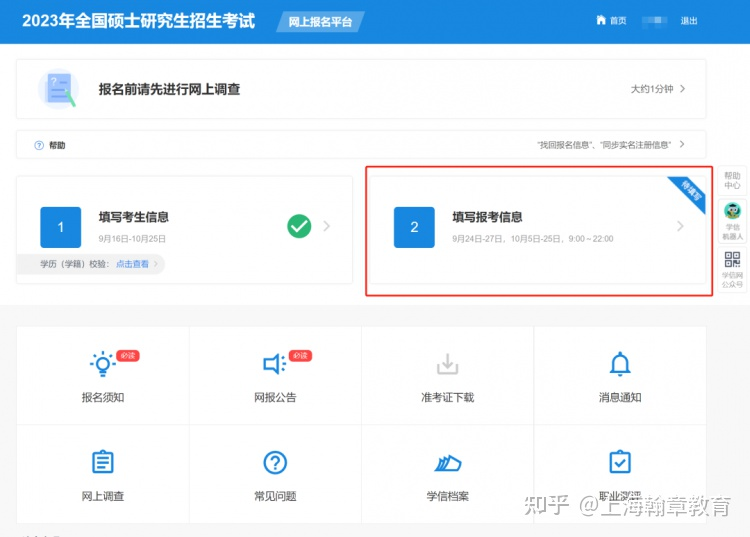 1、填写完毕“考生信息”之后——返回首页——继续“填写报考信息”。