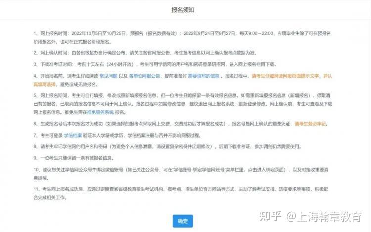 2、网报信息确认时间为2022年10月31日至11月5日,具体时间由报考点所属省级教育招生考试机构确定和公布。请考生及时关注各省级教育招生考试机构发布的公告,在规定时间内到指定地点现场核对并确认个人网上报名信息。逾期不再补办。