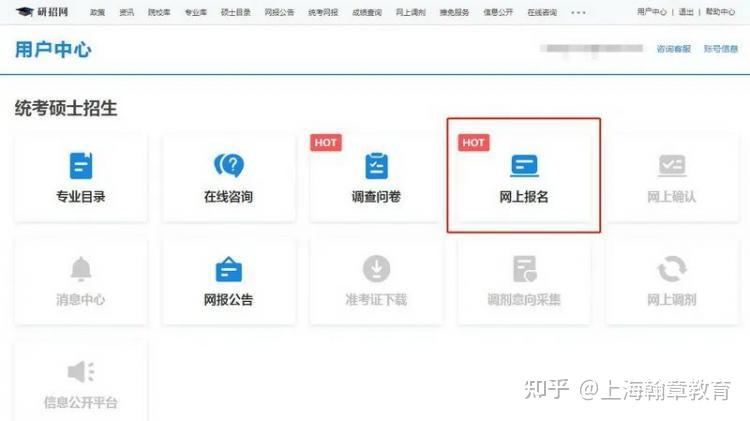 3、用户登录后,进入“用户中心”点击“网上报名”。