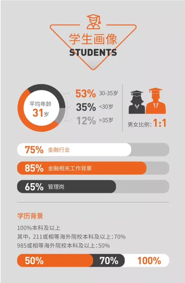 2021年,学院金融MBA项目即将送走第一届在职金融MBA拟毕业生,下图为学生画像。