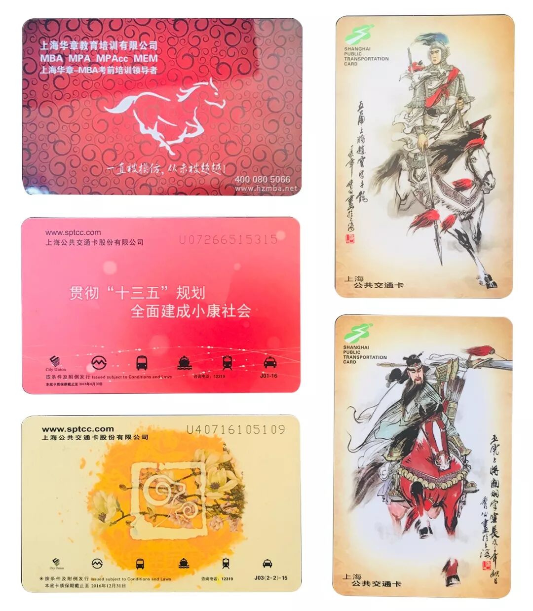 上海华彰——学生证,采用上海市轨道交通卡,每一期都不一样,已经发放过:贯彻“十三五”规划,全面建设小康社会纪念卡,三国版纪念卡,马年纪念卡,十二生肖纪念卡等。