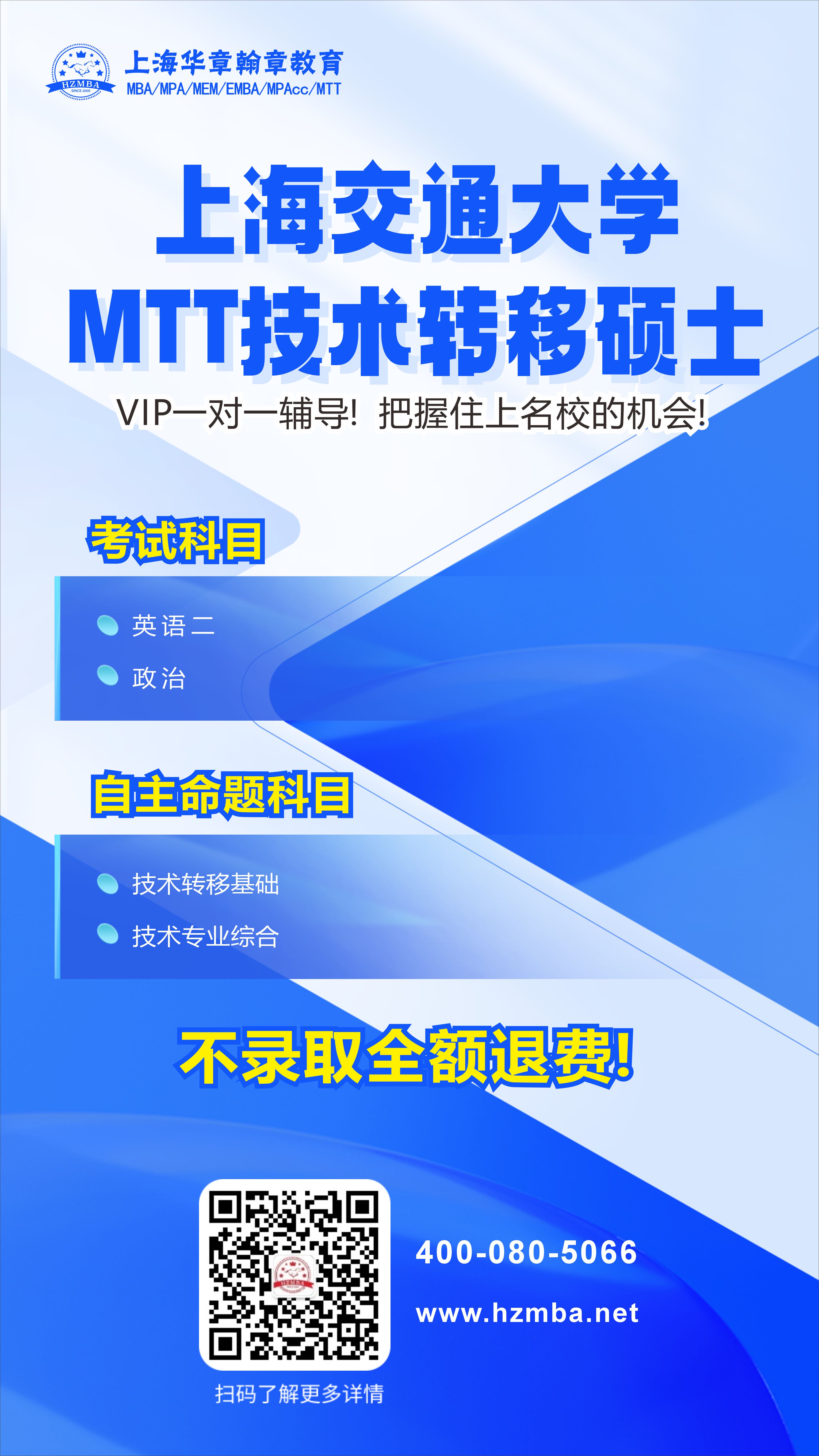 上海交大技术转移硕士(MTT)考研新政!VIP辅导1v1签约班,不录取全额退费!