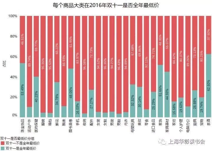 而男/女装等热门品类更是只有6.48%的商品在双十一的时候才是其最低价!