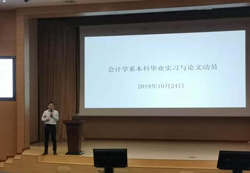 宣讲会以花老师的就业动员拉开帷幕。花老师针对大四学生,进行了题为“会计学系本科毕业实习与论文动员”的宣讲。他主要介绍了毕业论文的要求和实习要求等。