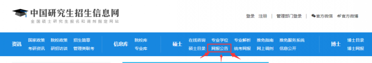 考生可以在研招网首页点击“硕士”栏目下的“网报公告”进行查询。