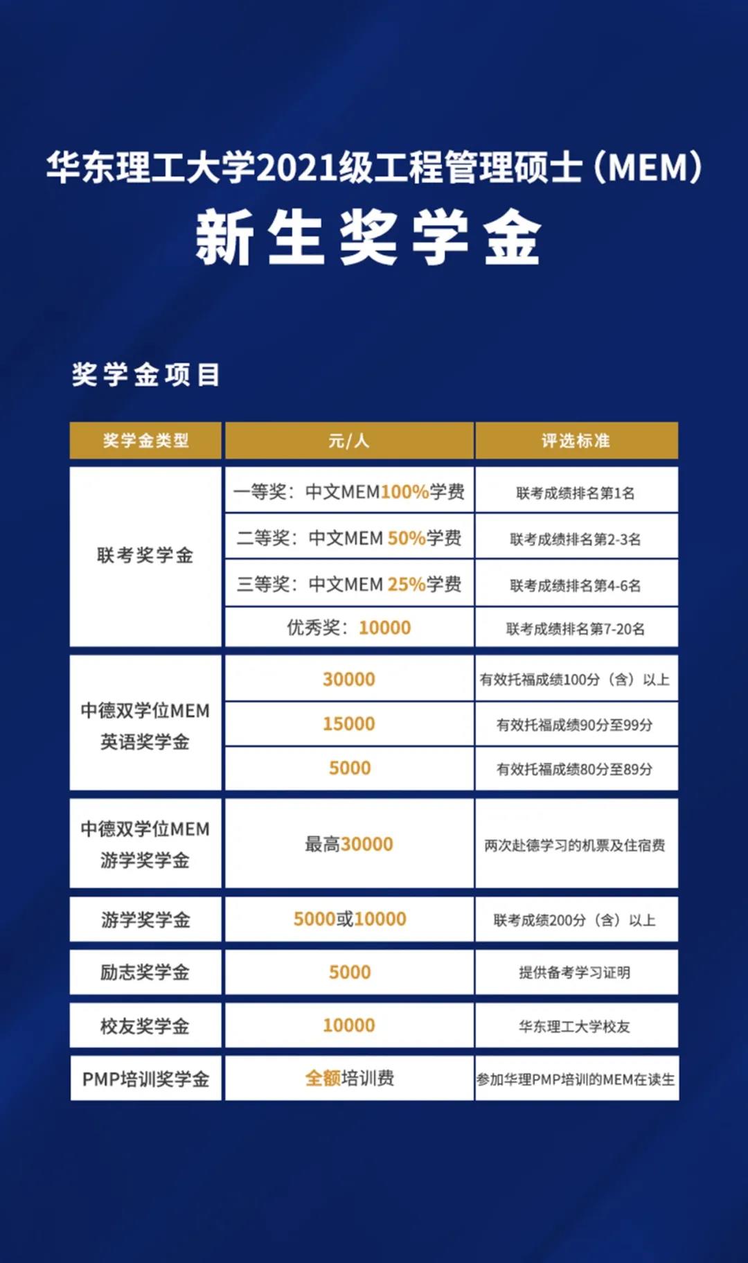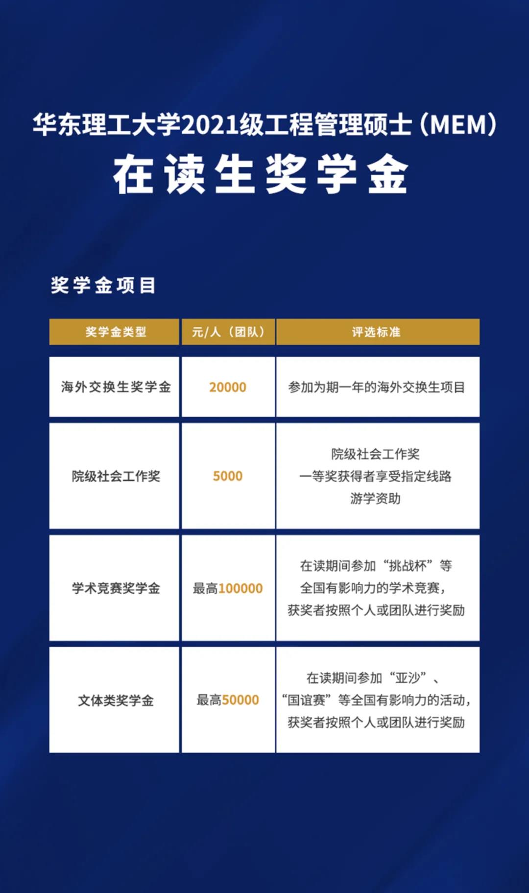 招生政策 | 华东理工大学2021级工程管理硕士(MEM)奖学金发布!