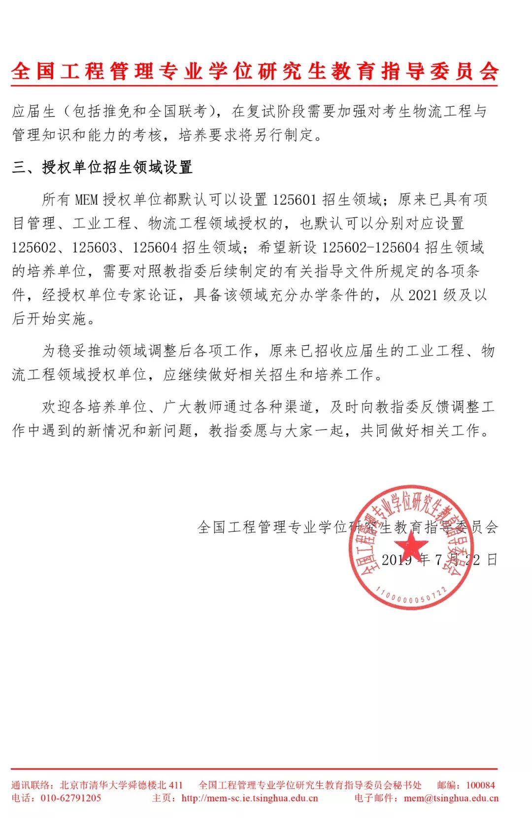 也就是表明从2020级起的五年内,应届生除了MPAcc(会计)、MAud(审计)和MLIS(图书情报),还能报考125603(工业工程与管理)、125604(物流工程与管理)。