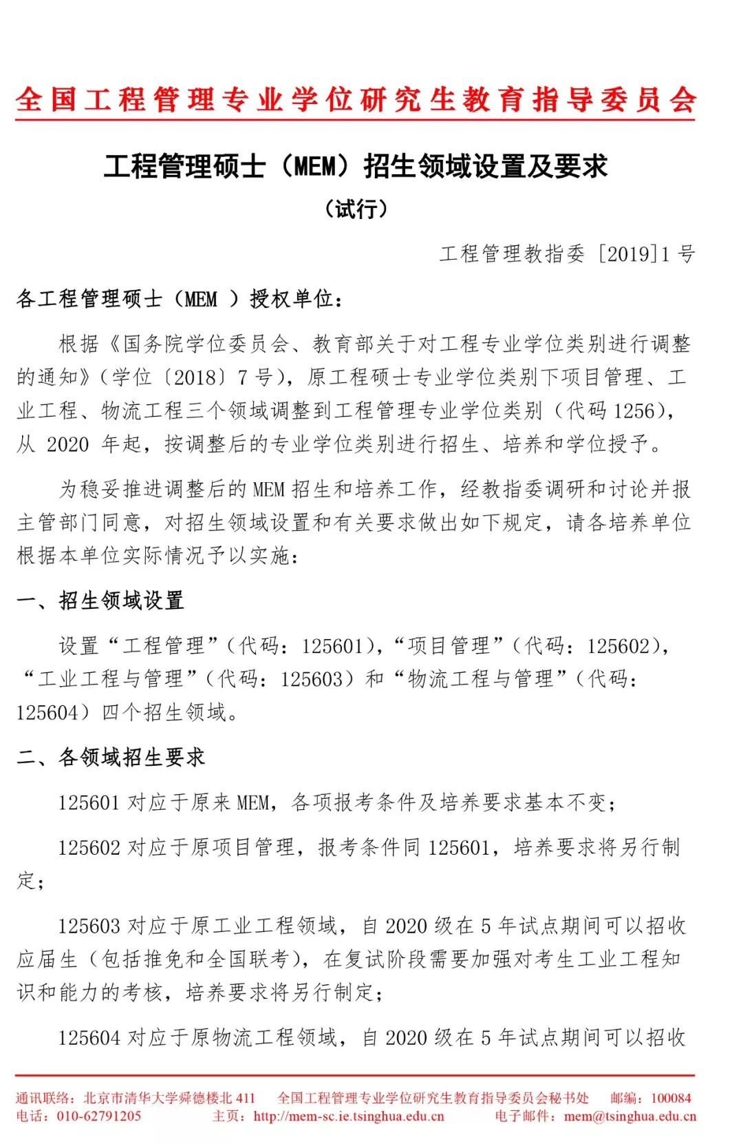 此次会发布了一份重磅文件《工程管理硕士(MEM)招生领域设置及要求(试行)》,在招生领域设置、各领域招生招生都做出的新的规定。其中最受关注的变化就是“工业工程与管理(125603)、物流工程与管理(125604)”自2020级在5年试点期间可以招收应届生(包括推免和管理类联考)!!