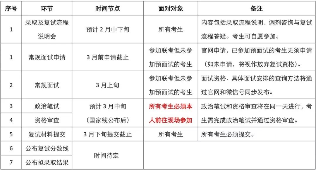 具体面试时间、批次安排和地点请密切留意官网和本公众号通知。
