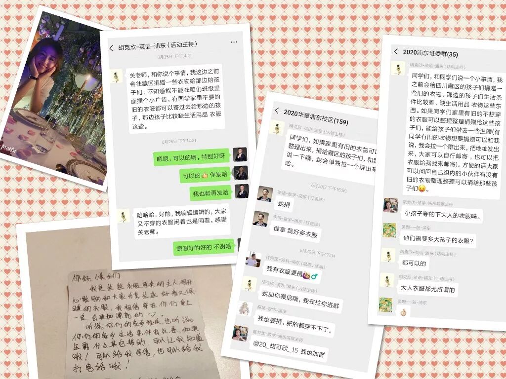 当初在浦东班委群里分享这个事情,因为经过一段时间的相处,同学们都是积极向上努力生活的人,而且我总是感觉大家应该衣服很多的吧,是不是可以也让他们一起给孩子们寄寄不穿的衣服,闲着还占用他们的衣柜,就是这样的初衷,把这件事情分享出去了。